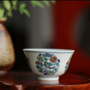 花舞大唐春内青花雪衣鹦鹉纹外斗彩鹦鹉图花纹仿古系列主人杯