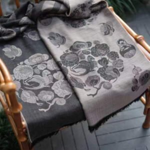 大唐遗宝 花舞大唐春鹦鹉团花纹艺术长巾围巾 羊毛艺术长巾驼色