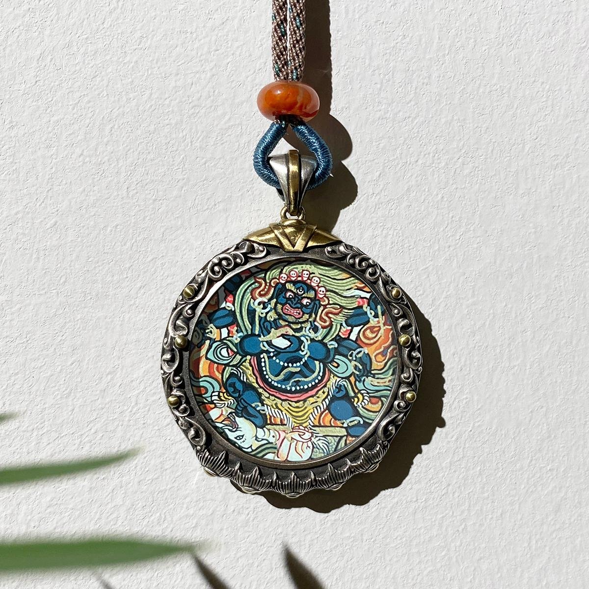 嵌金唐卡随身牌圆形·虚空藏菩萨